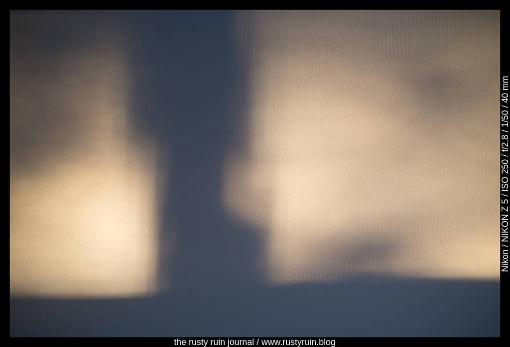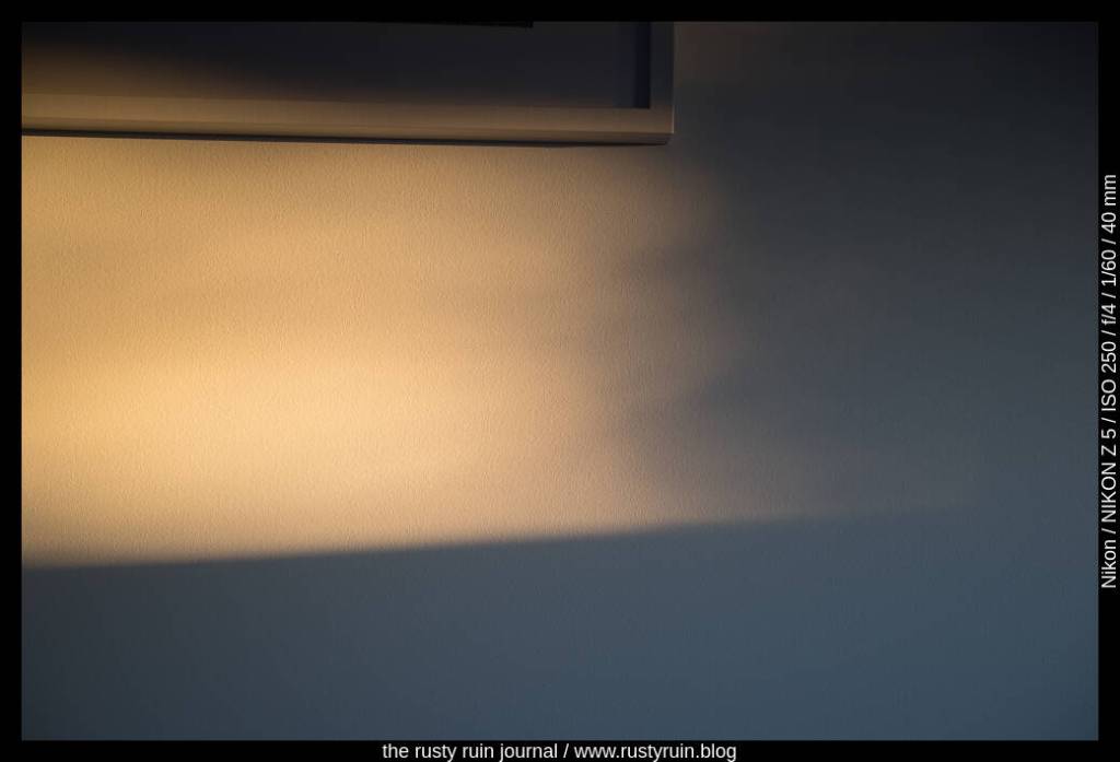 Entering the cabin, patches of slow late sunlight catch my eye – lambent and leisurely.